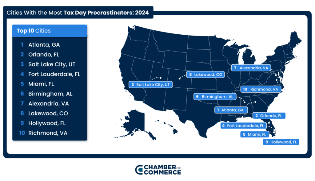 - For the second consecutive year, Atlanta, GA (No. 1), Orlando, FL (No. 2), Salt Lake City, UT (No. 3), Fort Lauderdale, FL (No. 4) and Miami, FL (No. 5) have all made the top 5 list of cities with the highest levels of tax filing procrastinating.